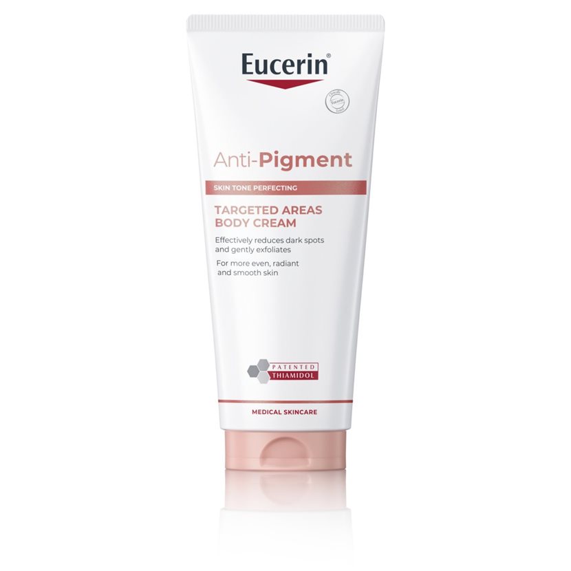 La crema corporal Eucerin® Anti-Pigment Crema Corporal para Áreas Específicas está diseñada para tratar manchas oscuras, pequeñas áreas de en zonas de fricción como rodillas y codos.